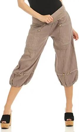 Malito Damen Pumphose aus Leinen | Stoffhose in Unifarben | Freizeithose für den Strand | Capri Hose 6285 (beige)