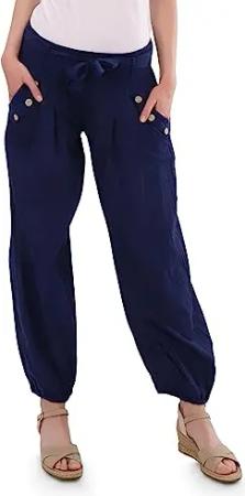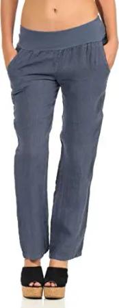 Malito Damen Hose aus Leinen | Stoffhose in Uni Farben | Freizeithose für den Strand | Chino - Jogginghose 7792 (Jeansblau, XL)