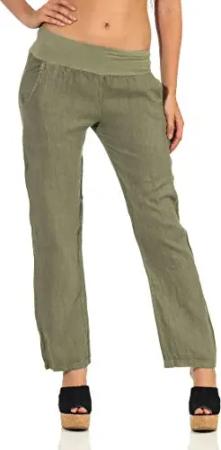 Malito - Damen Leinenhose - atmungsaktive Stoffhose - Freizeithose für Strand & Urlaub - Alltagshose Uni mit Jerseybund 2025 - Oliv, 3XL