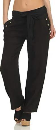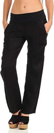 Malito Damen Hose aus Leinen | Stoffhose in Uni Farben | Freizeithose für den Strand | Chino - Jogginghose 7792 (schwarz, M)