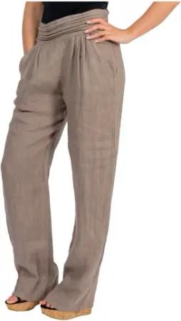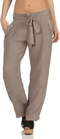 Malito – Damen Leinenhose mit Taschen – Stoffhose einfarbig – Leichte Sommerhose für warme Tage & Strand – Freizeithose für Frauen 2727 (Fango | Größe L)