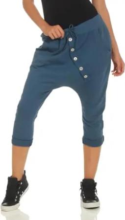 Malito – Damen Jogginhose – Kurze Haremshose aus Baumwolle – Baggy Sweatpants zum Tanzen & Chillen – Aladinhose für Frauen 8015 (Jeansblau)