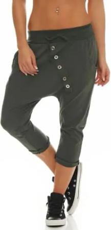 Malito – Damen Jogginhose – Kurze Haremshose aus Baumwolle – Baggy Sweatpants zum Tanzen & Chillen – Aladinhose für Frauen 8015 (Oliv)