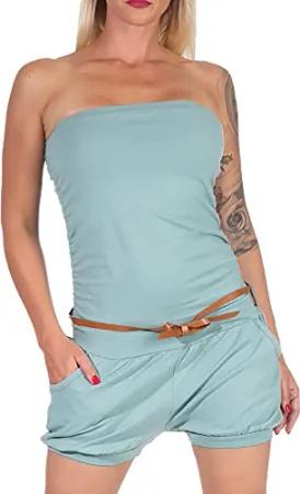 Malito - Damen Jumpsuit - Einteiler mit Gürtel & Taschen - Bandeau Sommer Overall - kurzer trägerloser Playsuit - unifarbener Romper 8964 (Jadegrün)