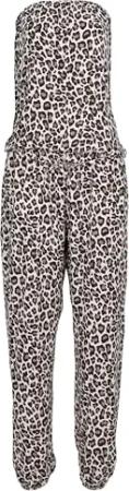 Malito - Damen Jumpsuit - langer Einteiler - Overall Carmen Ausschnitt - Hosenanzug Uni - Romper Leo-Print 4538 - (Leo-Beige)