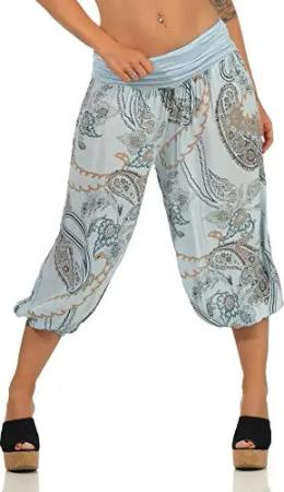 Malito Damen Kurze Aladinhose mit Print | Haremshose zum Tanzen | Pumphose zum Chillen - Freizeithose - Capri 7186 (hellblau)