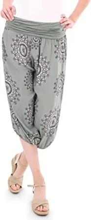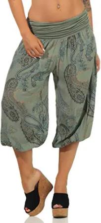 Malito - Haremshose Capri Damen Orient Print aus Baumwolle - Stoffhose elastischer Bund - Kurze Hippie Hose für Strand & Alltag - Aladinhose/Pumphose für Frauen 7196 (Größe: 34-42 Oliv)