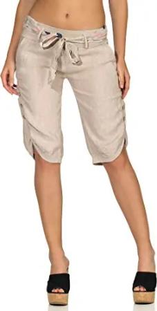 Malito Damen Bermuda aus Leinen | Shorts für den Strand | lässige Kurze Hose | Pants - Hotpants 8024 (beige, S)