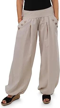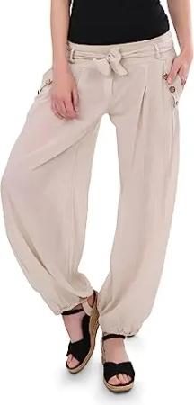Malito - Damen Pumphose - leichte Stoffhose für den Sommer - Freizeithose für Strand & Alltag - lässige Haremshose 3418 (beige)