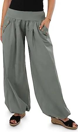Malito - Damen Pumphose - leichte Stoffhose für Strand & Alltag - lockere Freizeithose für den Sommer - lässige Aladinhose Sommerhose 23245H (34-40 |Oliv)