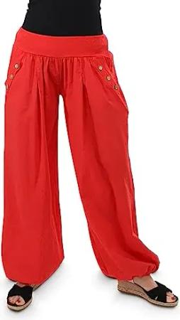 Malito - Damen Pumphose - leichte Stoffhose für Strand & Alltag - lockere Freizeithose für den Sommer - lässige Aladinhose Sommerhose 23245H (34-40 |rot)