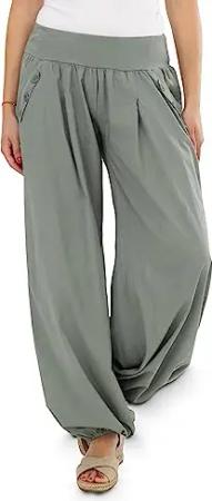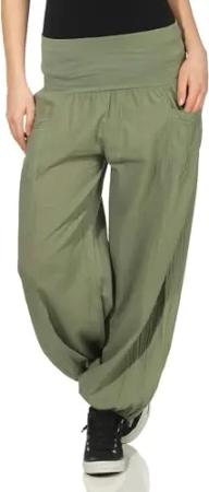 Malito Damen Stoffhose leicht | Pumphose zum Tanzen | Freizeithose zum Chillen | Haremshose - Sommerhose 17633 (Oliv)