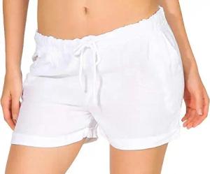 Malito Damen Shorts aus Leinen | lässige Bermuda | Pants für den Strand | Kurze Hose - Hotpants 1964 (weiß, XL)