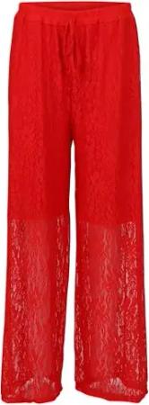 Malito - Damen Spitzenhose - weich fließende Strandhose - Lange Elegante Sommerhose - feminin festlich elastischer Bund 20634 - (Rot)