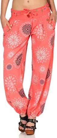 Malito – Haremshose Damen mit Print – Pumphose aus Baumwolle – Leichte Stoffhose – Sommerhose für warme Tage – Dünne Aladinhose für Frauen 3481 (Coral)