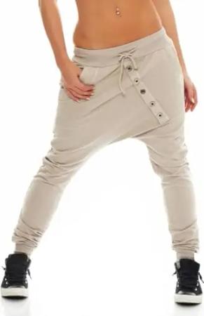 Malito – Jogginhose Damen Baggy aus Baumwolle – Sweathose mit elastischem Bund – Bequeme Low-Waist Haremshose Damen zum Tanzen & Alltag – Sweatpants Frauen Pumphose 8023 (Beige)
