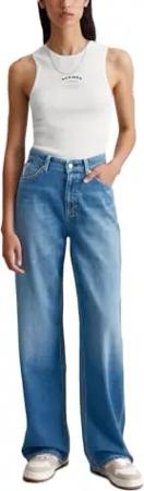 Marc OߴPolo Denim Damen Jeanshose aus Bio-Baumwolle Wide Leg, Blau (Medium Blue Multi 32), W29/L34