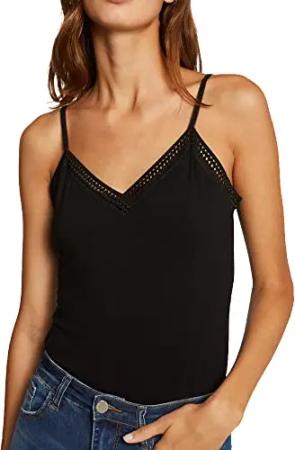 T-Shirt, kurzärmelig, mit Spitze, Schwarz, Größe XS