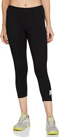 Essentials Logo Damen 3/4-Leggings, PUMA Black XS