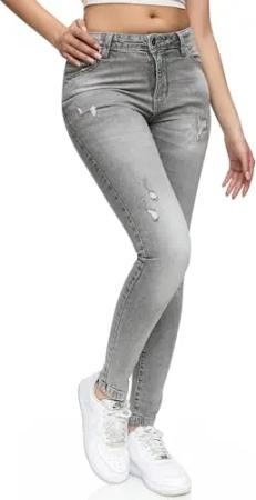 Damen Mid Waist Skinny-Fit Stretch Denim Jeans Basic RJ-1001 Grau 38