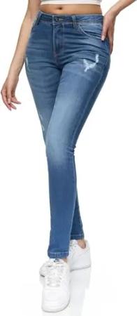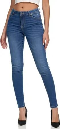 Damen Mid Waist Skinny-Fit Stretch Denim Jeans Basic RJ-1001 Mid Blue 38