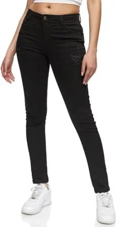 Damen Destroyed Mid Waist Skinny-Fit Stretch Denim Jeans RJ-1003 Schwarz 34