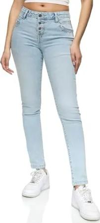 Damen Knopf Mid Waist Skinny-Fit Stretch Denim Jeans RJ-1004 Bleached Blue 34