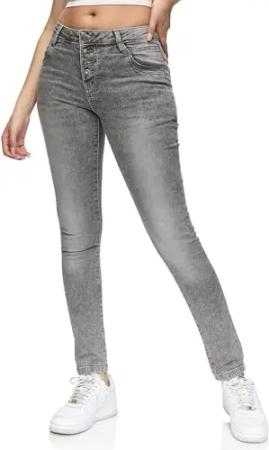 Damen Mid Waist Skinny-Fit Stretch Denim Jeans Basic RJ-1001 Grau 32