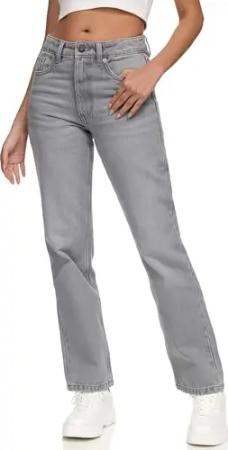 Damen Mid Waist Loose-fit Denim Jeans Basic RJ-1002 Grau 32