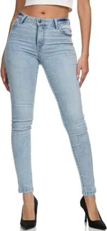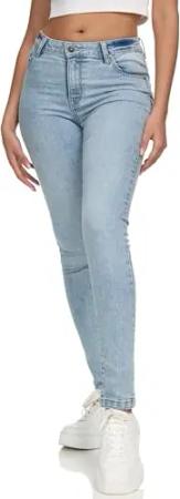 Damen Mid Waist Skinny-Fit Stretch Denim Jeans Basic RJ-1001 Bleached Blue 32