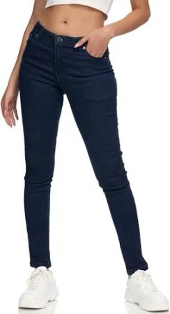 Damen Mid Waist Skinny-Fit Stretch Denim Jeans Basic RJ-1001 Dunkelblau 32