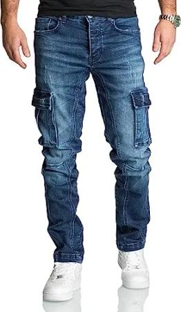 Herren Cargo Jeans Regular Slim Denim Hose Destroyed R7977 Dunkelblau W30/L32