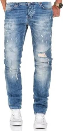 Herren Jeans Regular Straight Fit Denim Hose Destroyed R07984 Hellblau W38/L30