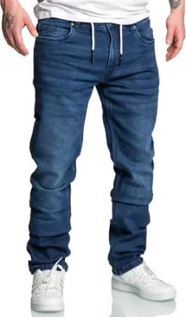 Herren Sweathose in Stretch Denim Basic Jeans Hose Kordel R7031 Dunkelblau W29