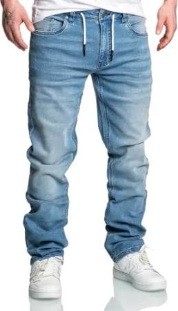 Herren Sweathose in Stretch Denim Basic Jeans Hose Kordel R7031 Hellblau W29