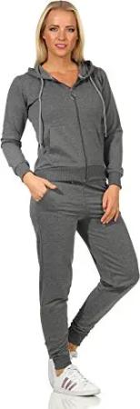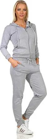 Damen Jogginganzug Freizeitanzug Sportanzug Frauen Trainingsanzug Sweatshirt Pulli Basic Hose Fitnessanzug Kapuzenjacke D-459 Grau 3XL