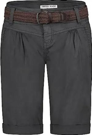 Damen Caprihose mit geflochtenem Gürtel Leinen Optik Bermuda Hose, Farben:Dunkelgrau, Größe:M