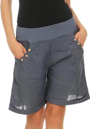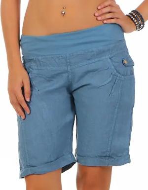 Malito Damen Bermuda aus Leinen | lässige Kurze Hose | Shorts für den Strand | Pants - Hotpants 3001 (Jeansblau, M)