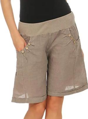 Malito Damen Bermuda aus Leinen | Shorts für den Strand | lässige Kurze Hose | Pants - Hotpants 8024 (Fango, M)