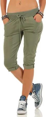 Malito - Damen Kurze Jogginghose - lässige Boyfriendhose - Sweatpants in Unifarben - Freizeithose für den Alltag 83701 OneSize (Oliv)