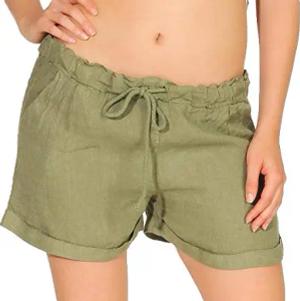Malito Damen Shorts aus Leinen | lässige Bermuda | Pants für den Strand | Kurze Hose - Hotpants 1964 (Oliv, M)