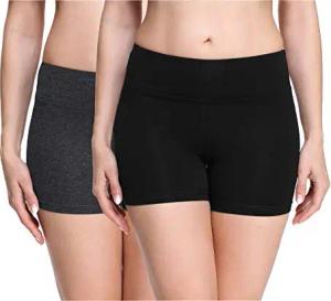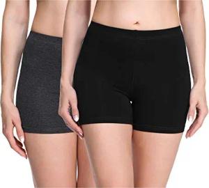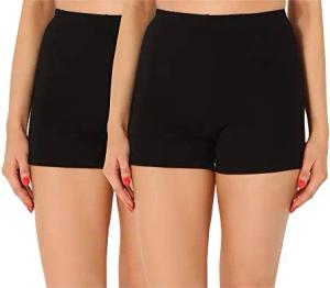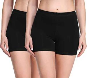 Damen Shorts Radlerhose Unterhose Hotpants Kurze Hose Boxershorts aus Baumwolle 2Pack MS10-358(2Pack Schwarz/Schwarz,XS)