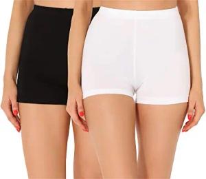 Damen Shorts Radlerhose Unterhose Hotpants Kurze Hose Boxershorts aus Baumwolle 2Pack MS10-358(2Pack Schwarz/Weiß,XL)