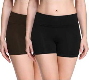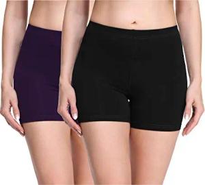Damen Shorts Radlerhose Unterhose Hotpants Kurze Hose Boxershorts aus Viskose 2Pack MS10-284(2Pack Schwarz/Pflaume,M)