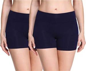 Damen Shorts Radlerhose Unterhose Hotpants Kurze Hose Boxershorts aus Viskose 2Pack MS10-283(2Pack Marineblau/Marineblau,XS)