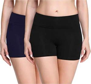 Damen Shorts Radlerhose Unterhose Hotpants Kurze Hose Boxershorts aus Viskose 2Pack MS10-284(2Pack Schwarz/Marineblau,XS)