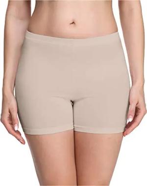 Damen Shorts Radlerhose Unterhose Hotpants Kurze Hose Boxershorts aus Viskose MS10-283(Beige,XL)