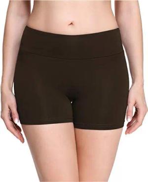 Damen Shorts Radlerhose Unterhose Hotpants Kurze Hose Boxershorts aus Viskose MS10-284(Braun,XS)