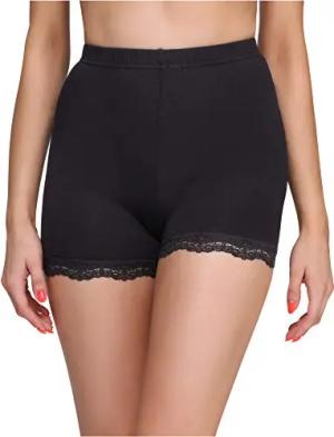 Damen Shorts Radlerhose Unterhose Hotpants Kurze Hose Boxershorts aus Viskose MS10-294 (Schwarz, S)