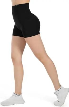 Shorts Damen Lissa, High Waist Radlerhose mit figurformendem Bund & seitlichen Eingrifftaschen, Training Shorts elastisch & enganliegend, ideal für Training, Alltag, Fitness & Yoga